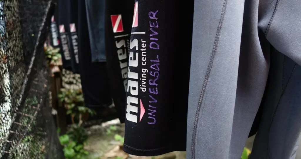 I have a bog-standard Aqualung 3mm wet suit that looks just like every other rental wetsuit, so I put my initials inside, just below the collar, to identify it. Sides of my boots as well.